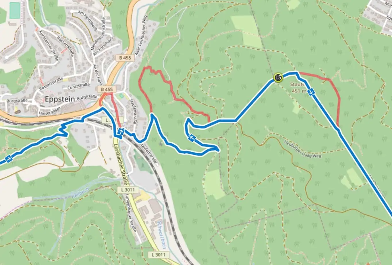 Zur Sicherheit prüfte ich ob mich der Track auch tatsächlich zurück nach Kelkheim führen würde, was er auf tun sollte. Das Ende des Tracks lag direkt am Waldhotel, so falsch konnte der Track gar nicht sein, immerhin hatte ich ihn direkt von Bert bekommen.