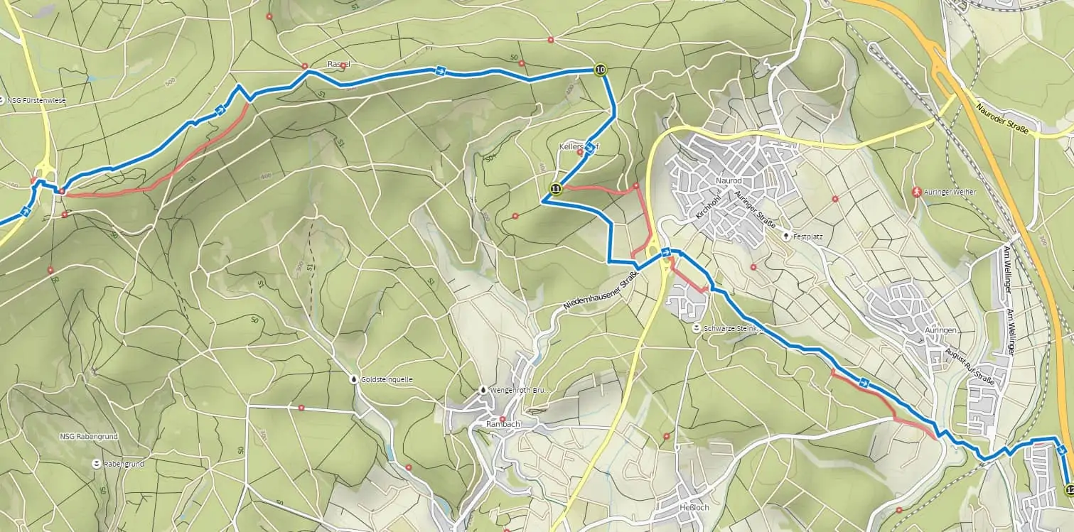 Bei Naurod lief ich dann plötzlich auf einen Weg der durch Bäume versperrt war. Das war der Moment wo ich kurz das erste Mal so richtig die Lust verlor, ich beendete die Navigation und versuchte den Track erneut zu importieren. Irgendwo musste der Fehler doch sein. Mittlerweile verfluchte ich abwechselnd Bert, Komoot und mich selbst. Half aber ja alles nix und zumindest das Ziel des Tracks stimmte ja. Im Endeffekt würde ich also ziemlich sicher im Ziel ankommen, zur Not würde ich unterwegs eine Tankstelle finden und mich mit Futter und Wasser eindecken.