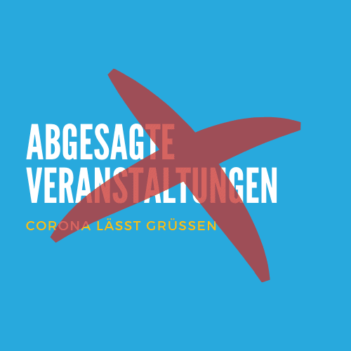 Hier findest du eine Auflistung der Veranstaltungen aus der Region die schon sicher abgesagt wurden. Die Liste wird regelmäßig von mir aktualisiert. Solltest du von einer abgesagten Veranstaltung erfahren, dann wäre ich dir für einen Hinweis dankbar.