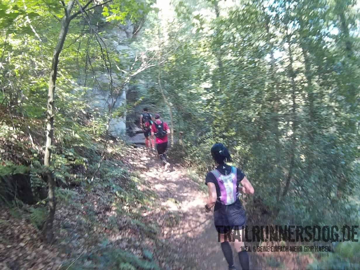 Das Müllertal nahe dem luxemburgischen Echternach, oder nahe von zu ziemlich jedem Ort im kleinen Luxemburg oder auch die kleine luxemburgische Schweiz ist ein Traum für jeden Wanderer, Läufer oder Naturliebhaber allgemein. Es verdankt seinen Namen den Sandsteinfelsen die über die Jahrtausende u.a. von der Sauer ausgehöhlt wurden. So bewegt man sich nahezu immer unter dem normalen Level über verschlungene Pfade, durch Spalten und über Wasserläufe. Schon bei meinem ersten Besuch im April, war ich total von den Socken. Ich bin, wie ich finde ja hier in meiner Gegend schon echt gesegnet mit tollen Trails und tue mich auf fremden Trails oft schwer wahre Begeisterung zu zeigen, aber das Müllertal ist einfach ein Traum mit seinen Steinformationen und seiner Wildheit.