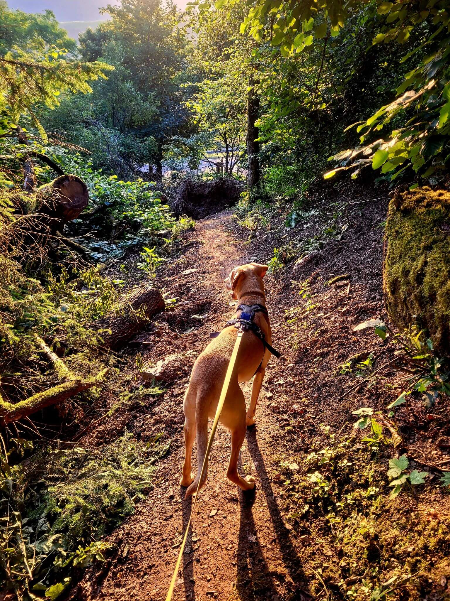 Mit Mio war ich auch wieder viel unterwegs, wobei ich da schon aufpassen musste, dass ich es nicht übertreibe mit ihm. Die Temperaturen waren früh am Tag schon sehr hoch und er verträgt Hitze überhaupt nicht. Außerdem trocknen Bäche langsam aus und Pfützen sind langsam auch Mangelware. Ich muss dann im Vorfeld schon immer überlegen, wo es Möglichkeiten für den Hund gibt, sich abzukühlen und zu trinken. Die Läufe mit ihm fanden dann auch immer bei Sonnenaufgang statt. Das hatte dann aber auch den Vorteil, sehr, sehr schöne Fotos und Videos zu machen 😊