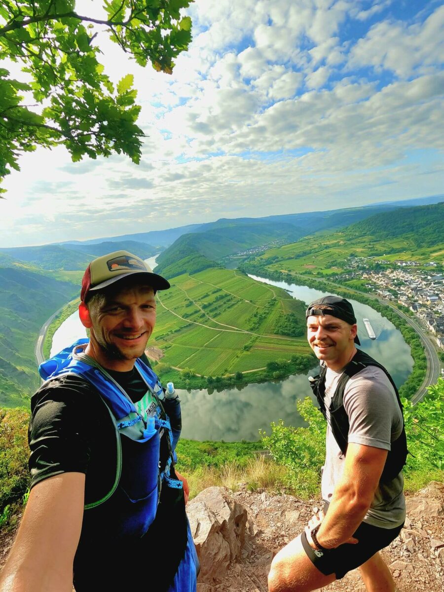 Dann kommt man ganz leicht auf über 1000 Höhenmeter bei 20 km Strecke. Ich glaube nicht, dass man sich hier in der Gegend besser auf das vorbereiten kann, was einen beim ZUT alles erwartet. Besonders froh bin ich, dass ich Ross bei seinem ersten Besuch im Calmont diese Strecke zeigen konnte. Er war ziemlich begeistert. Und auch ganz schön kaputt, denn er hatte längere Zeit mit Achillessehnenproblemen zu kämpfen und das war sein längster Lauf nach langer Zeit.
