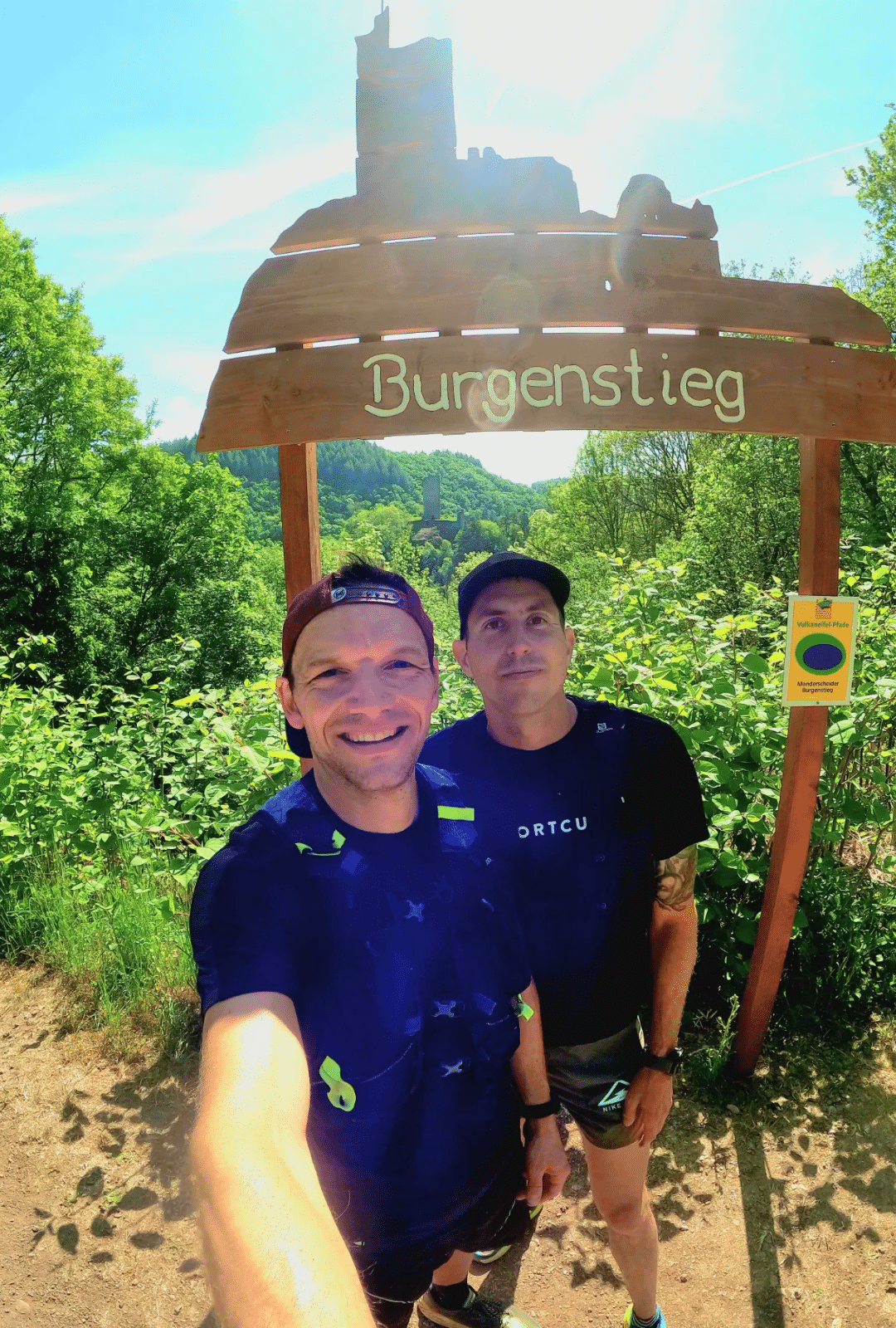Während des Laufs konnte ich zwei Jungs der Trailcrew Trier kennenlernen. Die Unterhaltung mit den beiden gefiel mir, lenkte es doch sehr von der mühevollen Plackerei ab. Leider endeten die Gespräche dann, denn einer der beiden bog ab, um die 35 km Runde weiterzulaufen, der andere war mir einfach zu schnell. Beide konnten mit starken Leistungen jeweils einen Platz auf dem Treppchen ergattern, Glückwunsch!