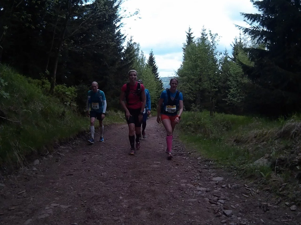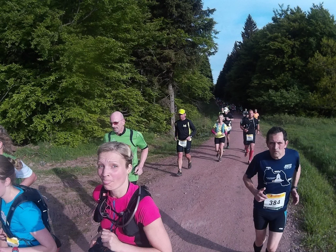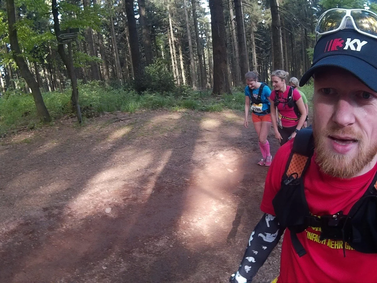 Die erste Hälfte war geprägt von lockerer Stimmung, Ausgelassenheit und gegenseitigem Kennelernen auf dem Trail, ähm Verzeihung Waldwirtschaftsweg. Die Mädels fieberten den erstem ersten VP mit Würstchen entgegen und „Würstl“ war das Thema Nummer eins unterwegs :) Ich nickte immer fein fleißig, waren die Würste ja eher nix für mich.
