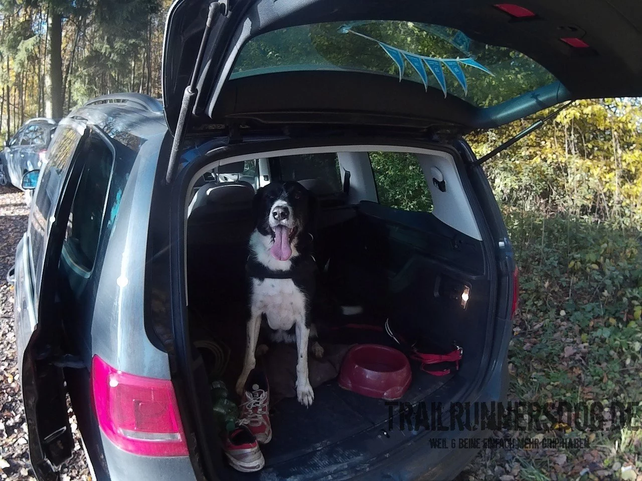 Geplant waren ca. 20 km, aufgeteilt in zwei Häppchen a 12 und 8 km. So konnte jeder dem 20 km zuviel waren bereits bei km 12 aussteigen. Glücklicherweise war km 12 ziemlich direkt am Parkplatz, es galt also nicht der alte Spruch „bei 12 km kannst du gerne aussteigen, sind dann auch nur noch 8 km…“. Ich hatte für Bonni und mich die 20 km eingeplant, war allerdings gespannt wie sich mein Vierbeiner schlagen würde. Sie ist unverschuldet etwas aus dem Training aktuell.