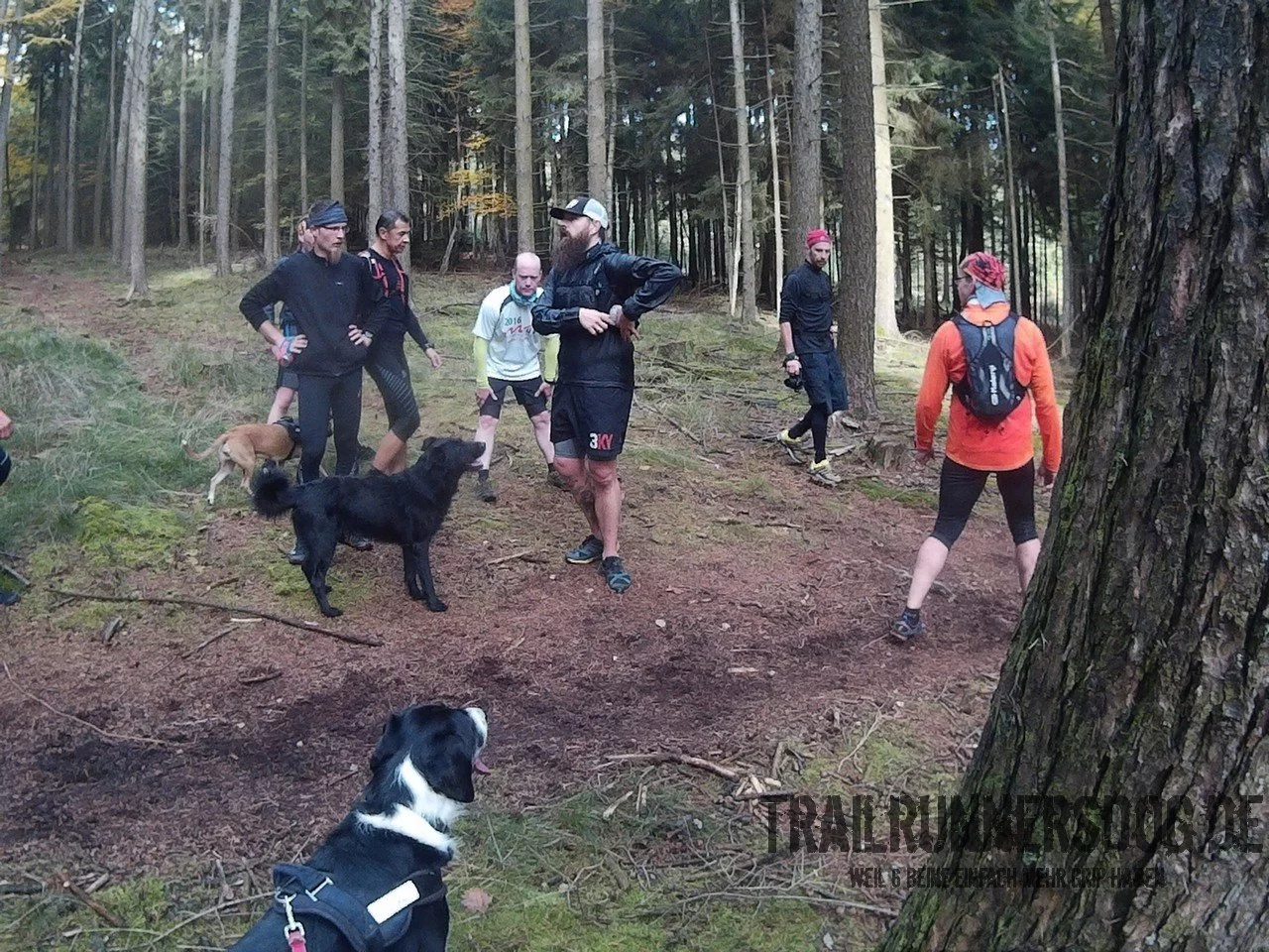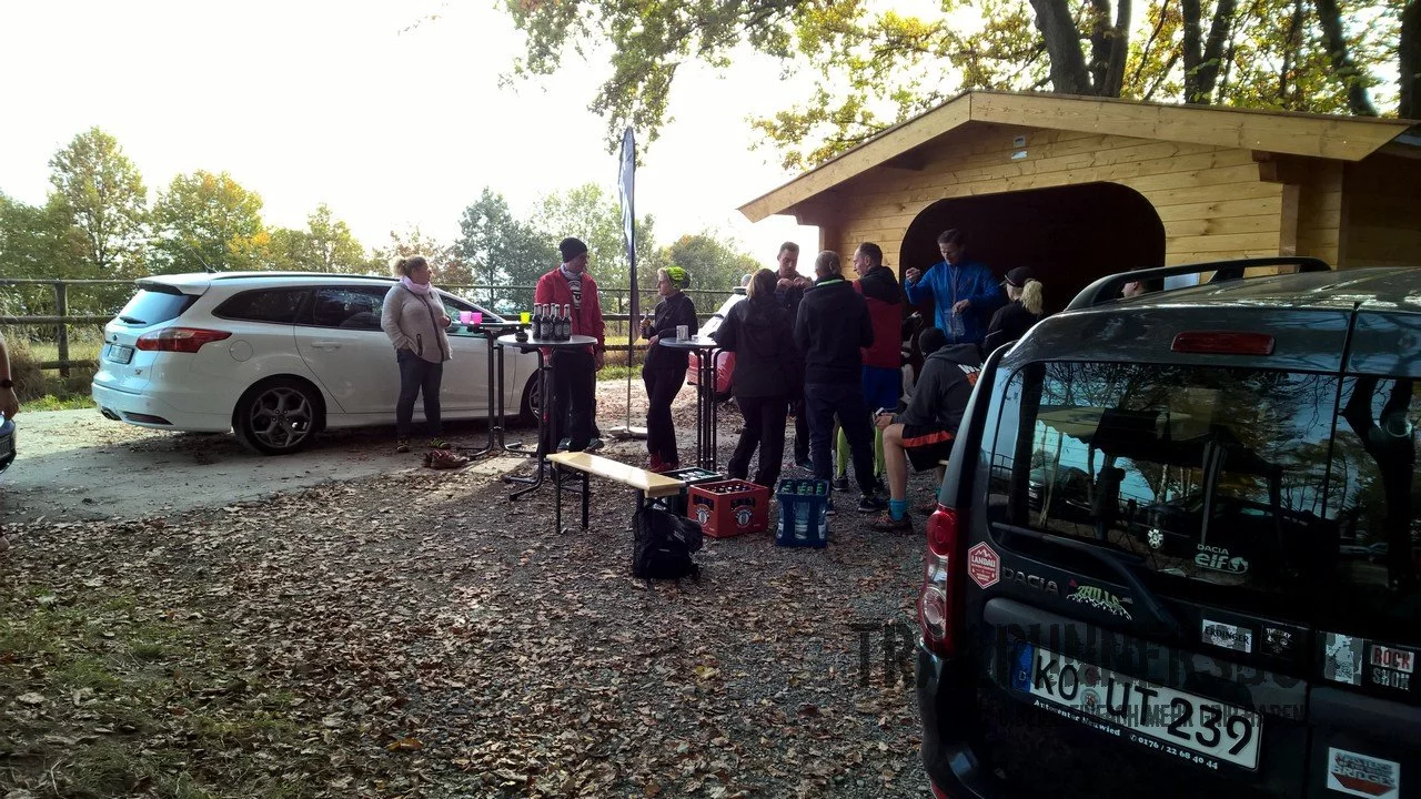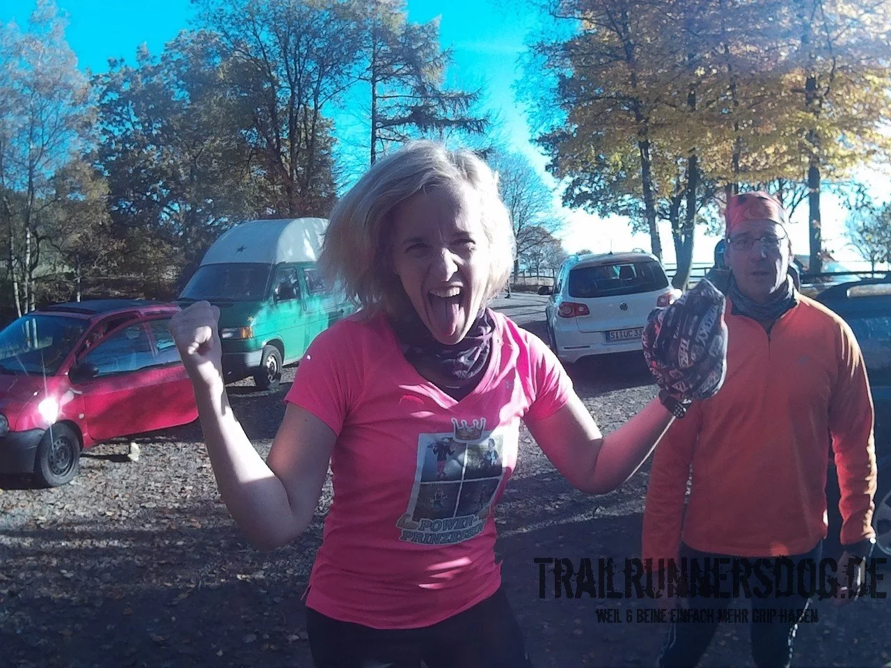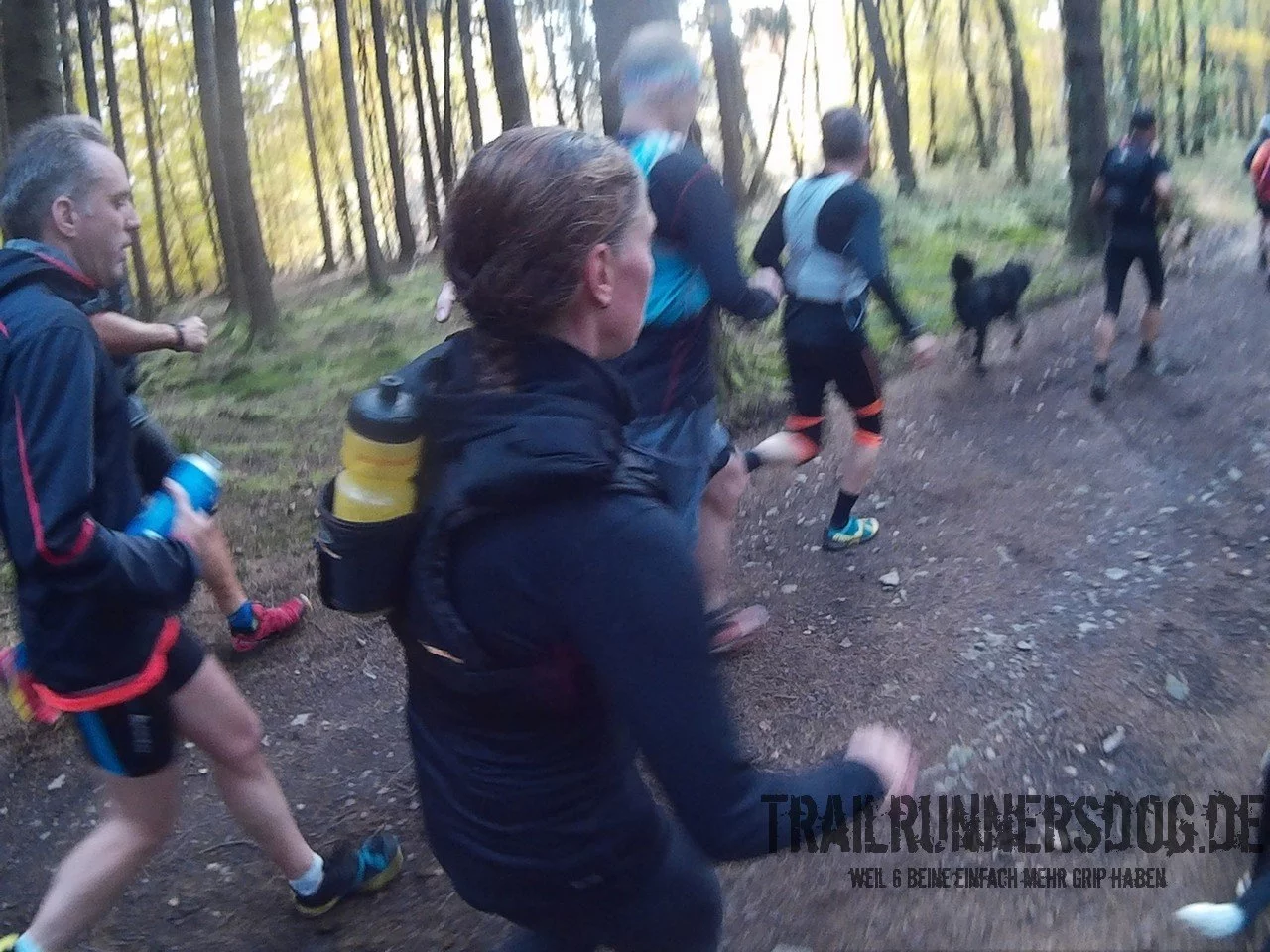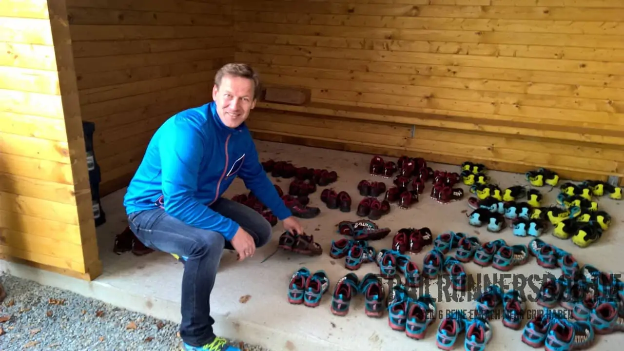 Die Laufbrigade rief also und Bonni und ich folgten diesem Ruf. Als tolle „Beigabe“ gab es auch noch die Möglichkeit drei Modelle der Firma inov-8 live auf dem Trail zu testen. Möglich gemacht hat das die Firma Fuss-Kraft GmbH aus Gummersbach, die durch den Geschäftsführer Thorsten Rinker „repräsentiert“ wurde. Ich schreibe das jetzt in Anführungszeichen, weil Thorsten „einfach“ da war und es absolut nicht wirkte wie eine Werbeveranstaltung. So nahm er sich für jeden Läuferfuß ausreichend Zeit um den passenden Schuh zu finden, was auch bis auf eine Ausnahme gelang. Mit Schuhgröße „Kindersarg“ hatte er einfach nicht gerechnet, dabei hatte er jede Menge Exemplare mit gebracht.