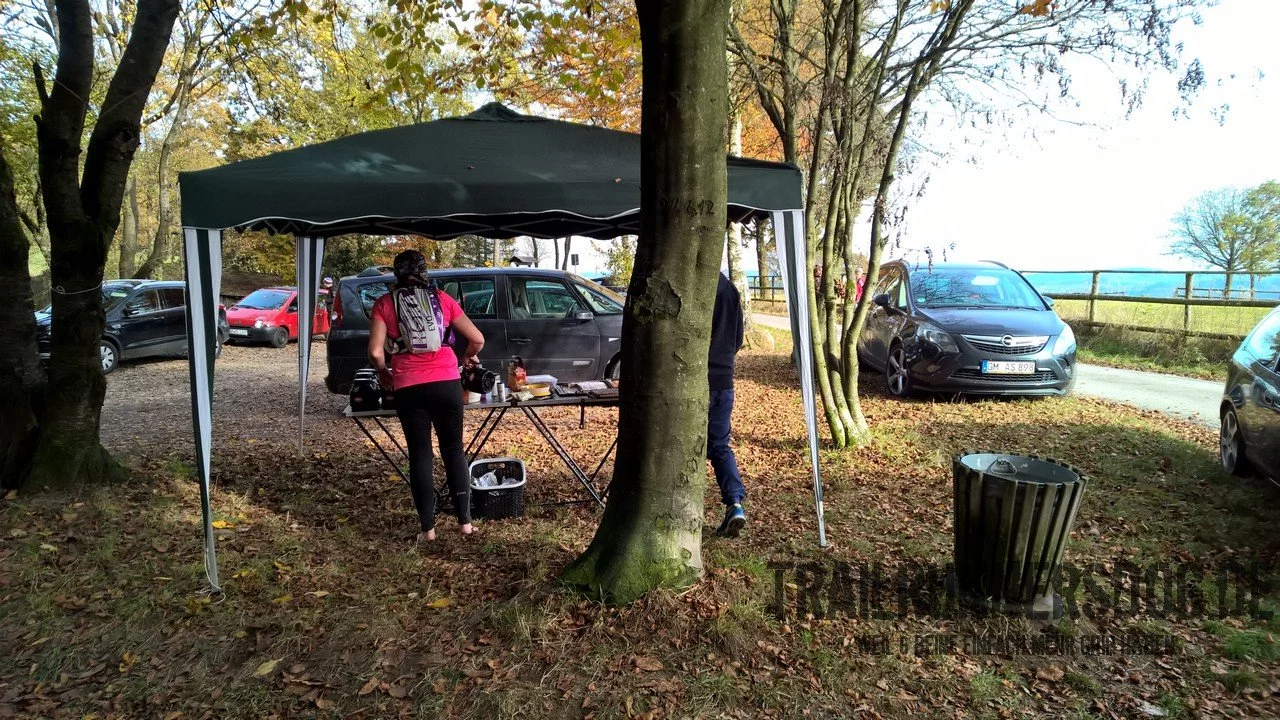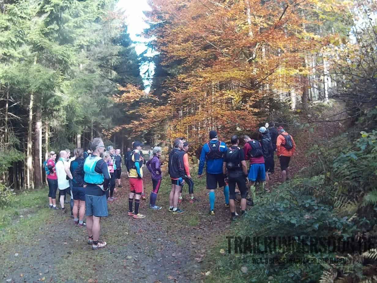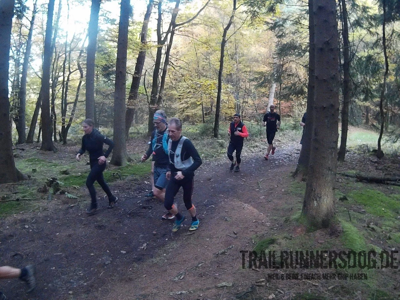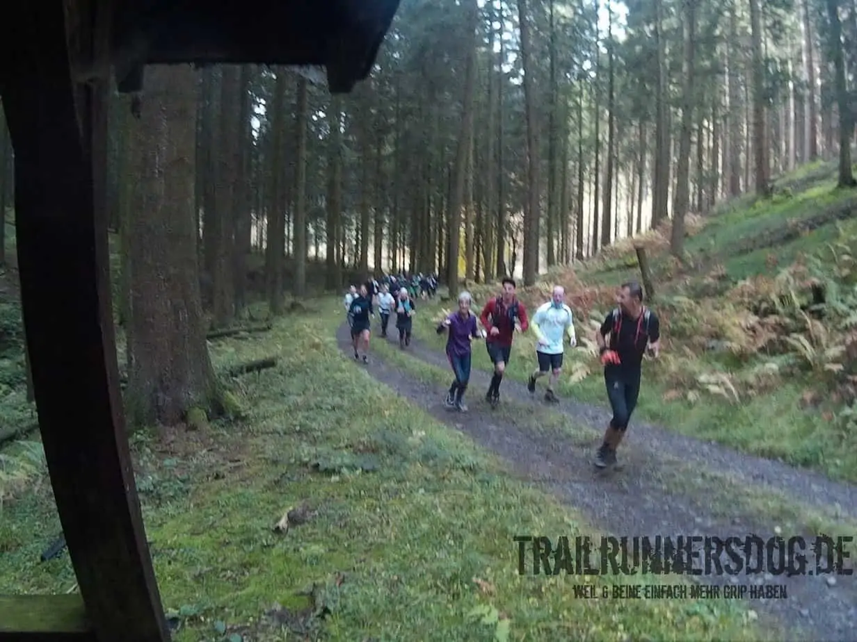 Die Laufbrigade rief also und Bonni und ich folgten diesem Ruf. Als tolle „Beigabe“ gab es auch noch die Möglichkeit drei Modelle der Firma inov-8 live auf dem Trail zu testen. Möglich gemacht hat das die Firma Fuss-Kraft GmbH aus Gummersbach, die durch den Geschäftsführer Thorsten Rinker „repräsentiert“ wurde. Ich schreibe das jetzt in Anführungszeichen, weil Thorsten „einfach“ da war und es absolut nicht wirkte wie eine Werbeveranstaltung. So nahm er sich für jeden Läuferfuß ausreichend Zeit um den passenden Schuh zu finden, was auch bis auf eine Ausnahme gelang. Mit Schuhgröße „Kindersarg“ hatte er einfach nicht gerechnet, dabei hatte er jede Menge Exemplare mit gebracht.