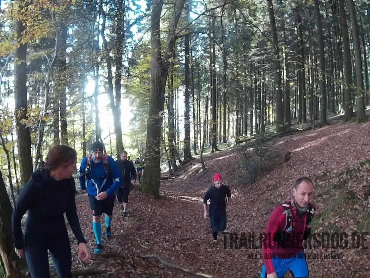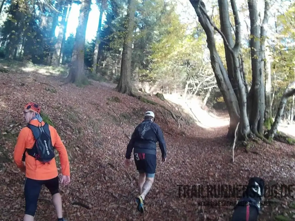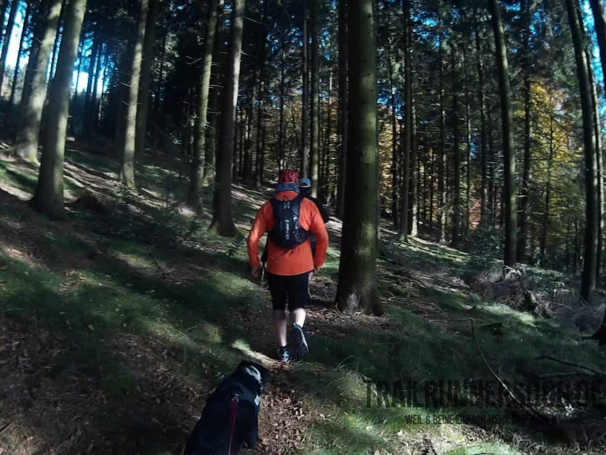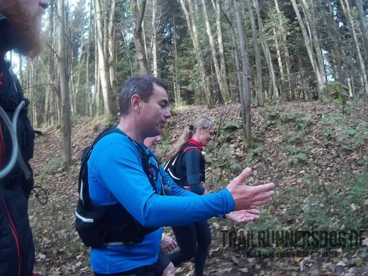 Auch wenn das Tempo der Gruppe recht gut harmonierte, kam es logischerweise immer wieder zu kurzen Gehpausen um nach schnellen Down- oder steilen Uphills den anderen die Chance zu geben wieder ran zu kommen. Udo und Hansi nutzen die Chance sich gegenseitig von ihren größten Stücken Kuchen zu erzählen… Läuferlatein quasi.
