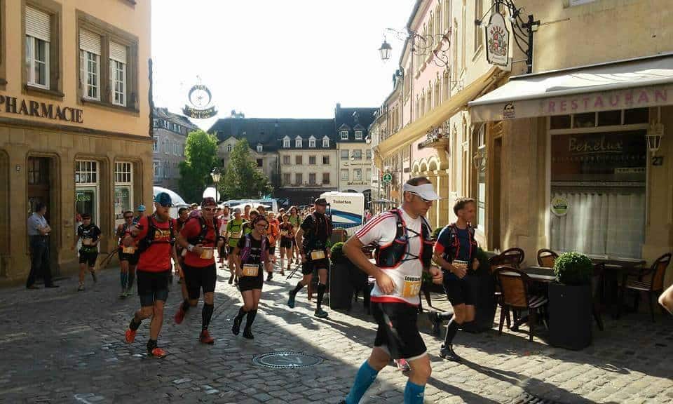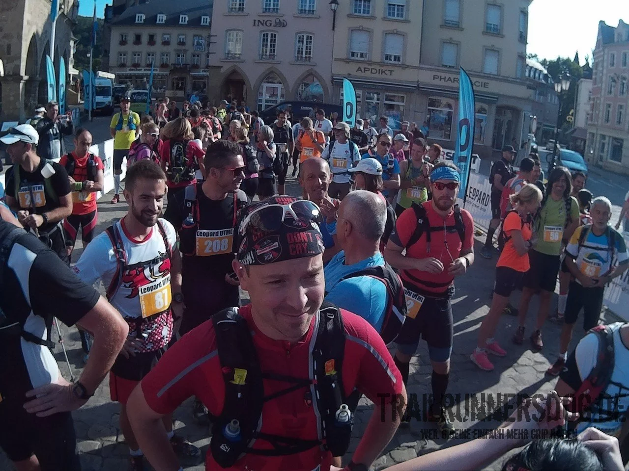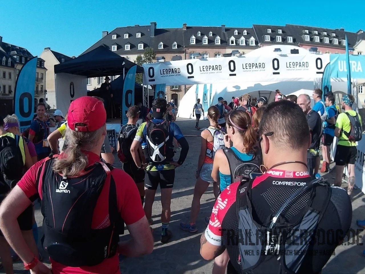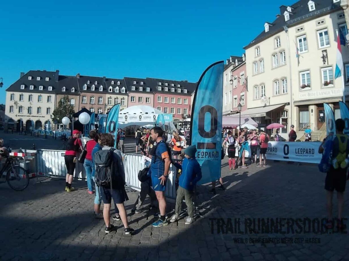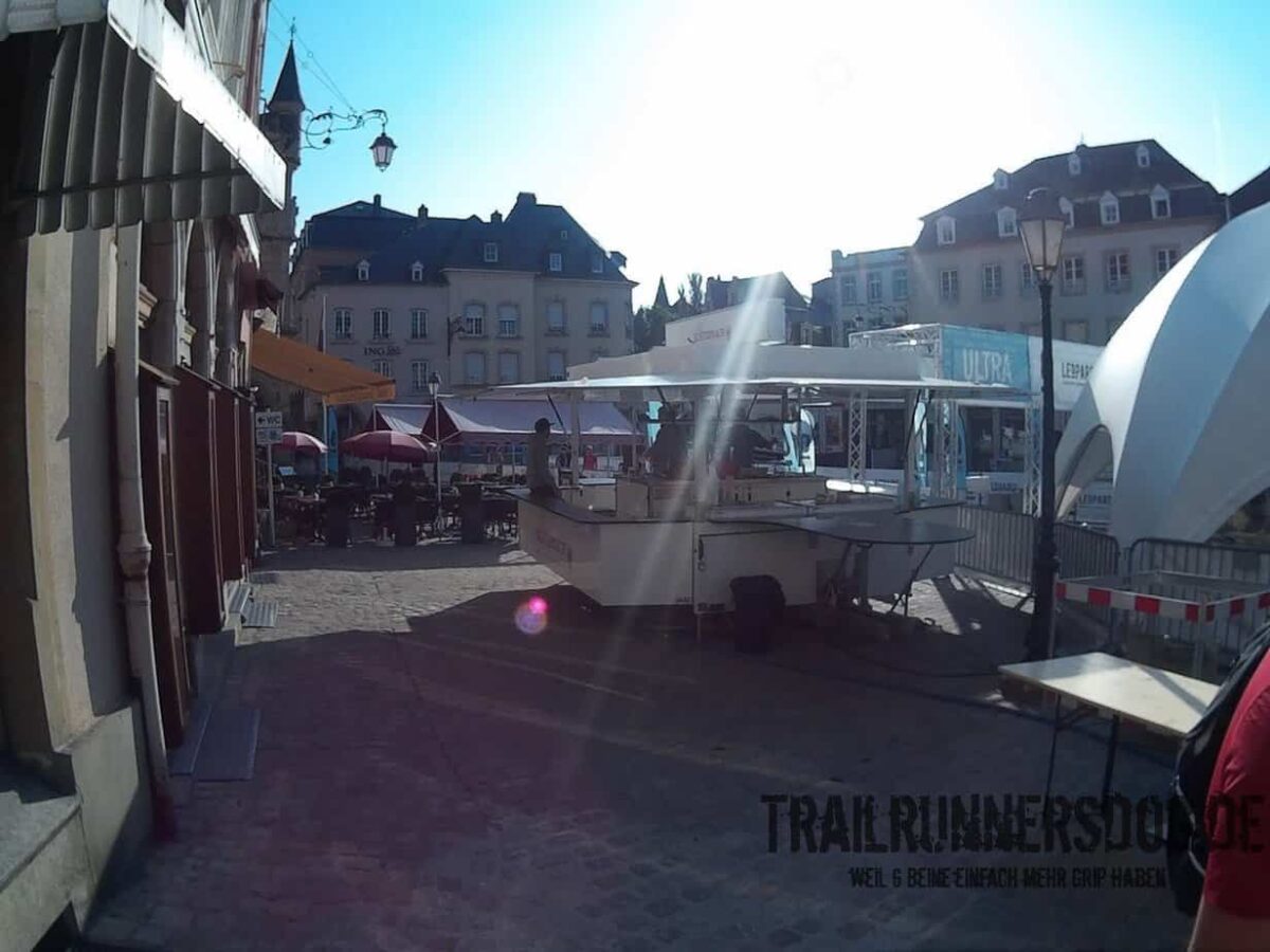 Wir trafen uns in Echternach auf einem Parkplatz, bzw. wir erkannten uns da relativ ungeplant da sie gerade ankam und Marko begrüßte. So zogen wir zu dritt in Richtung Start- und Zielbereich auf dem Echternacher Marktplatz. Dort war so eine halbe bis dreiviertel Stunde vor dem Start noch nicht allzuviel los. Die ersten Läufer begannen allerdings gerade einzutrudeln. Hab ich schon erwähnt dass um 10:00 zu starten echt Luxus ist? Wenn ich sonst irgendwo starte, bin ich um diese Uhrzeit meist schon 4-5 Stunden auf den Beinen.