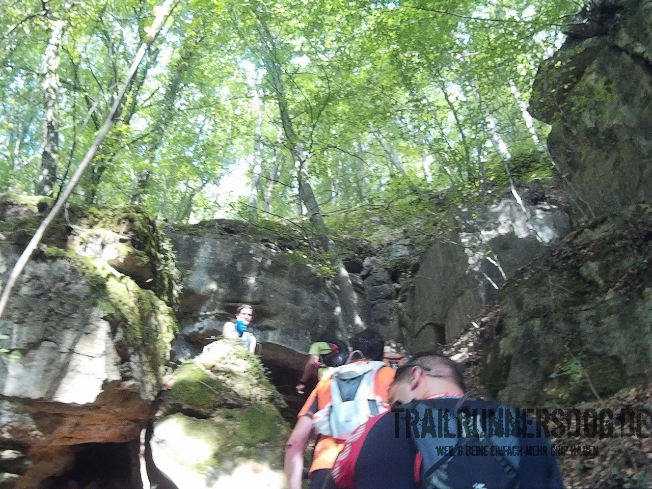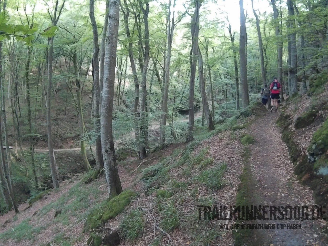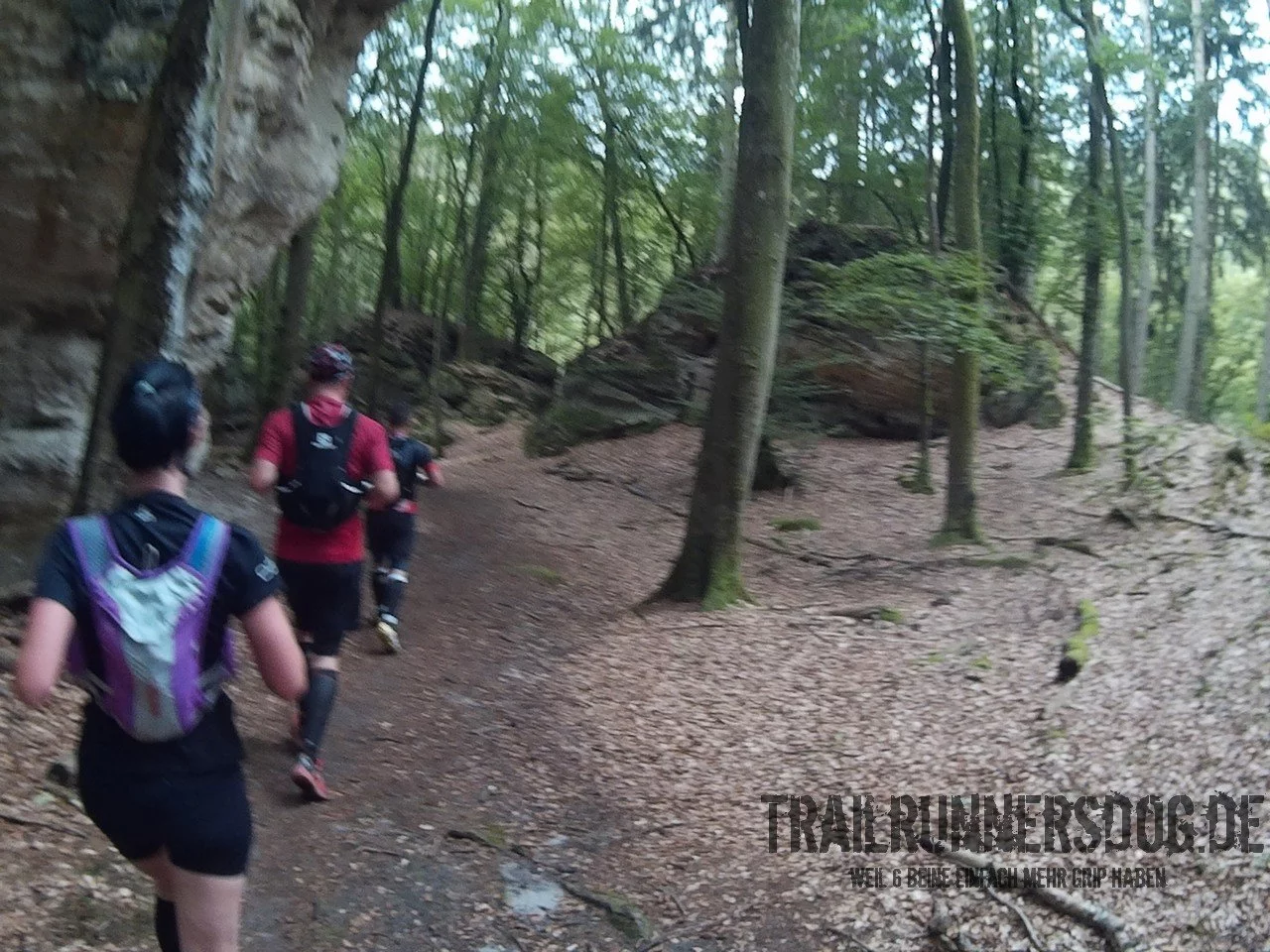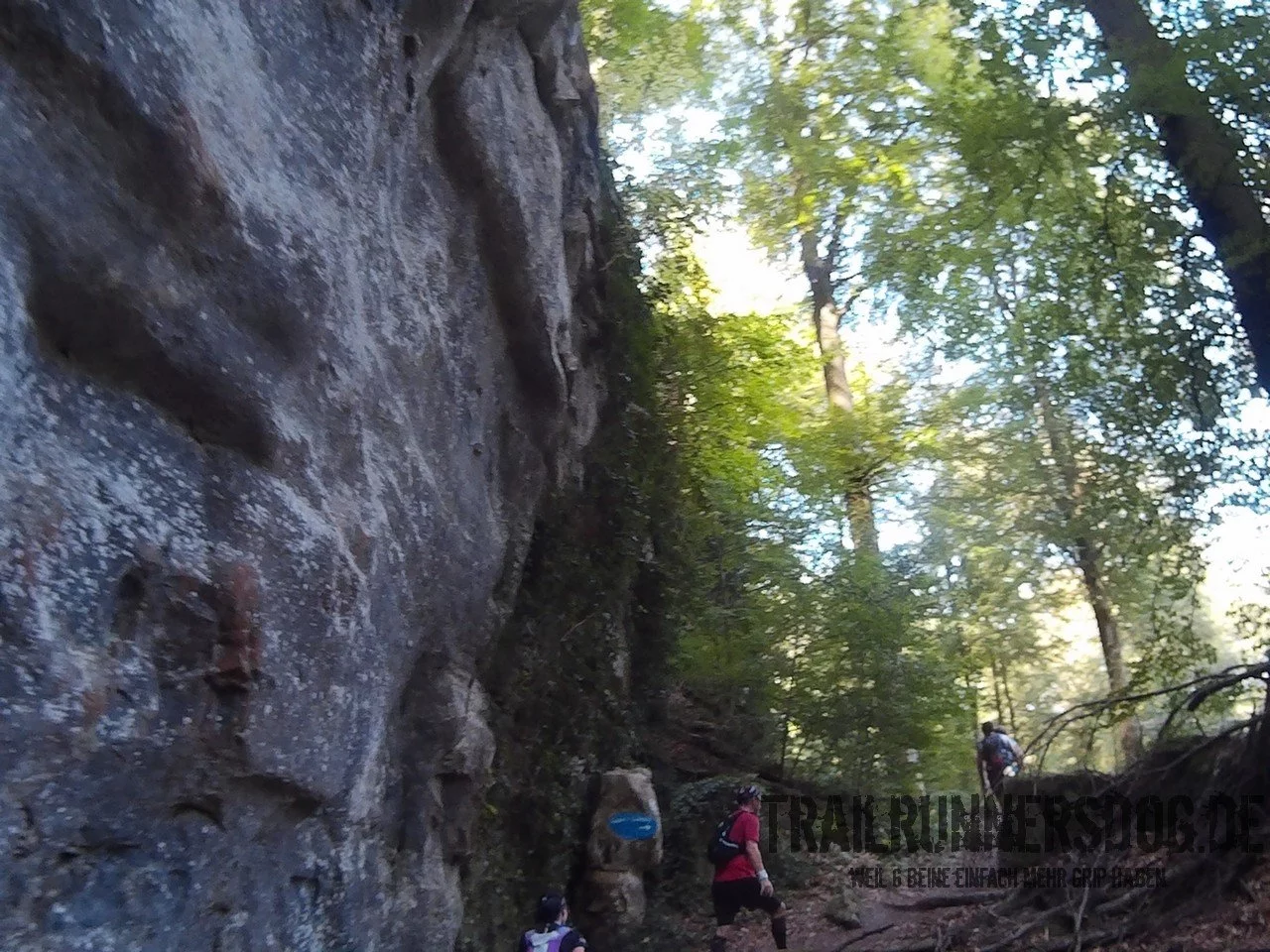 Das Müllertal nahe dem luxemburgischen Echternach, oder nahe von zu ziemlich jedem Ort im kleinen Luxemburg oder auch die kleine luxemburgische Schweiz ist ein Traum für jeden Wanderer, Läufer oder Naturliebhaber allgemein. Es verdankt seinen Namen den Sandsteinfelsen die über die Jahrtausende u.a. von der Sauer ausgehöhlt wurden. So bewegt man sich nahezu immer unter dem normalen Level über verschlungene Pfade, durch Spalten und über Wasserläufe. Schon bei meinem ersten Besuch im April, war ich total von den Socken. Ich bin, wie ich finde ja hier in meiner Gegend schon echt gesegnet mit tollen Trails und tue mich auf fremden Trails oft schwer wahre Begeisterung zu zeigen, aber das Müllertal ist einfach ein Traum mit seinen Steinformationen und seiner Wildheit.