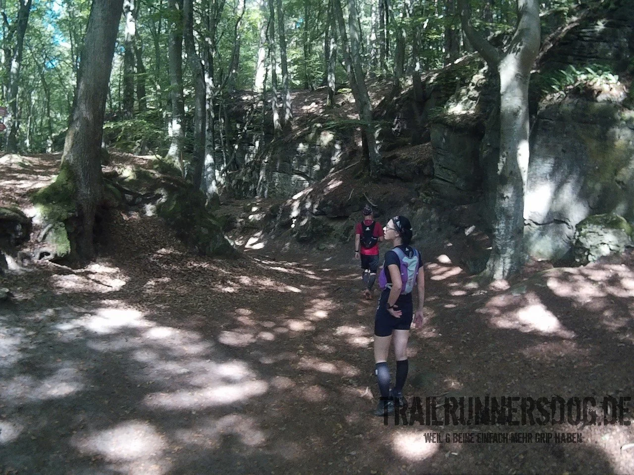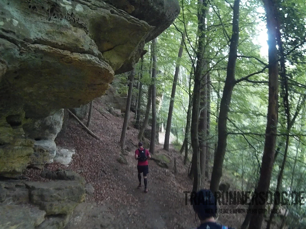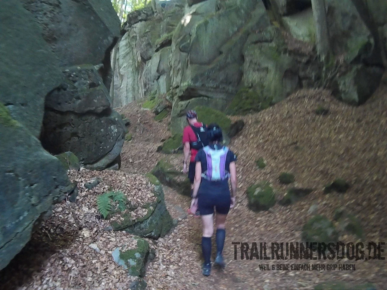 Das Müllertal nahe dem luxemburgischen Echternach, oder nahe von zu ziemlich jedem Ort im kleinen Luxemburg oder auch die kleine luxemburgische Schweiz ist ein Traum für jeden Wanderer, Läufer oder Naturliebhaber allgemein. Es verdankt seinen Namen den Sandsteinfelsen die über die Jahrtausende u.a. von der Sauer ausgehöhlt wurden. So bewegt man sich nahezu immer unter dem normalen Level über verschlungene Pfade, durch Spalten und über Wasserläufe. Schon bei meinem ersten Besuch im April, war ich total von den Socken. Ich bin, wie ich finde ja hier in meiner Gegend schon echt gesegnet mit tollen Trails und tue mich auf fremden Trails oft schwer wahre Begeisterung zu zeigen, aber das Müllertal ist einfach ein Traum mit seinen Steinformationen und seiner Wildheit.