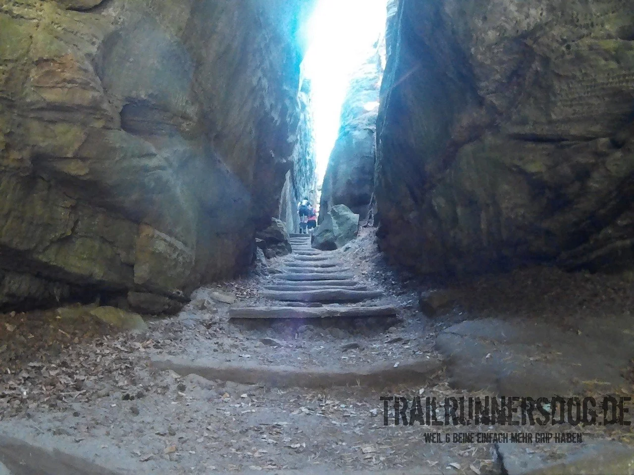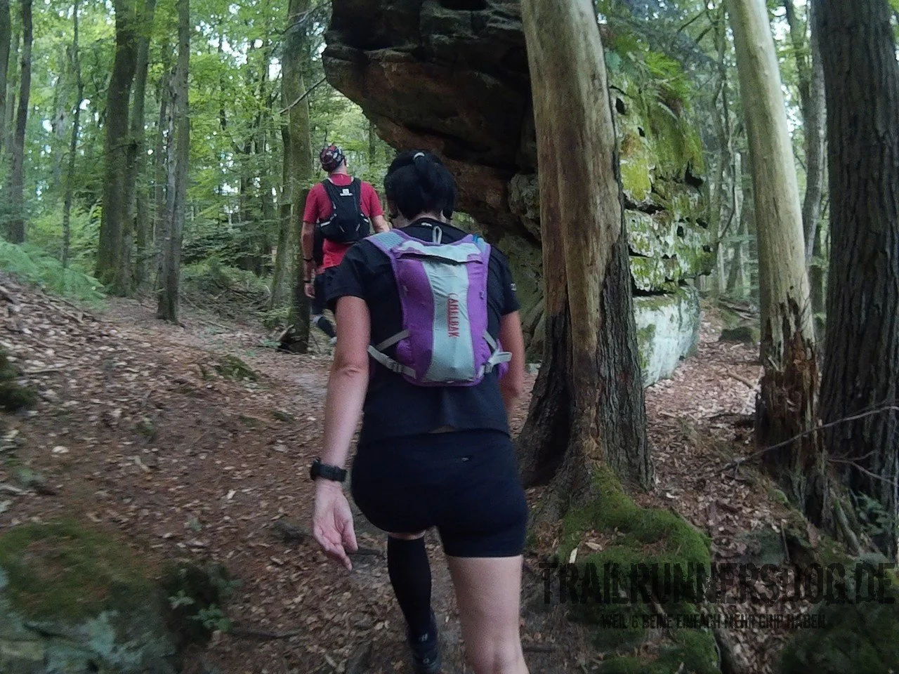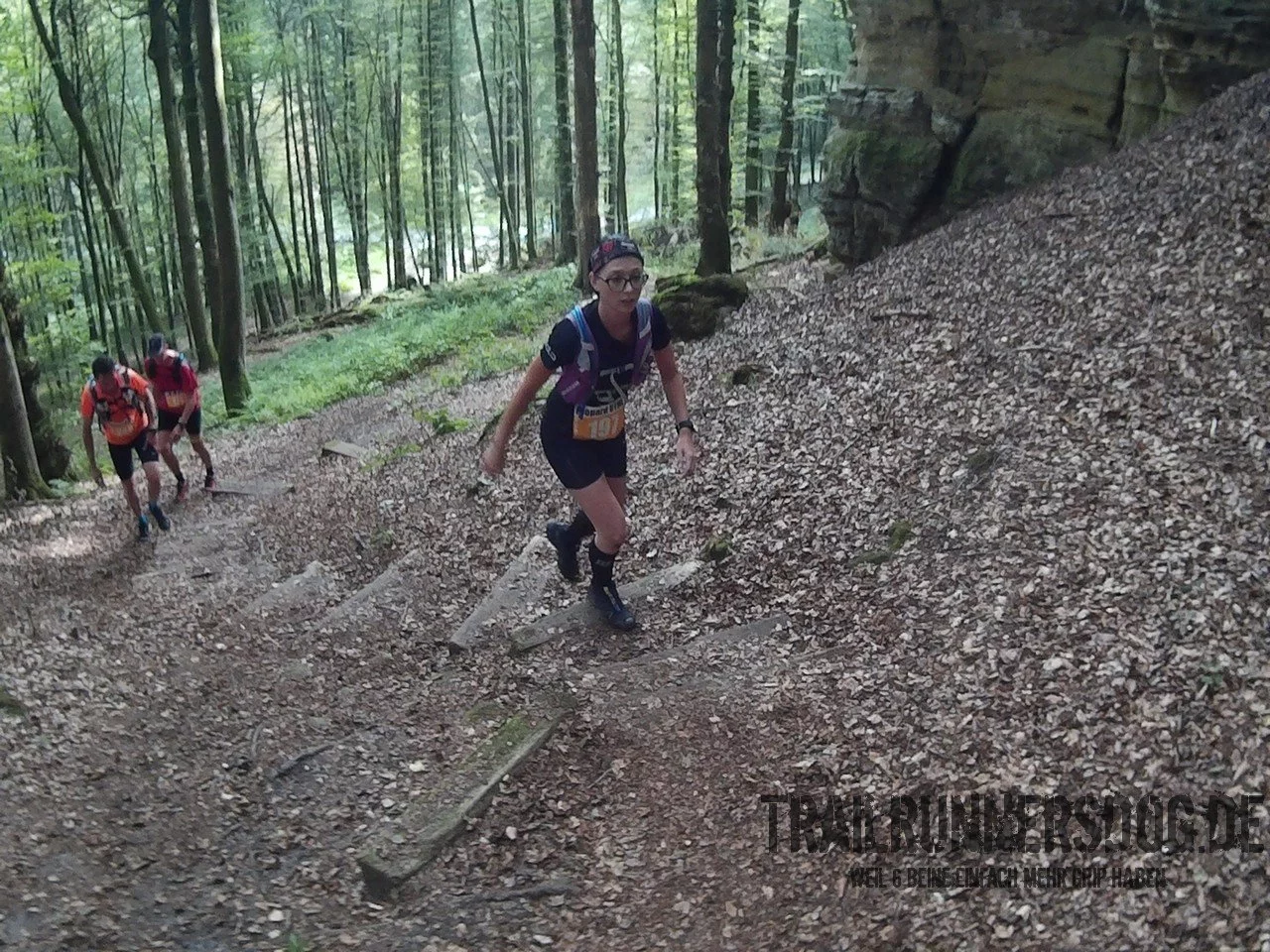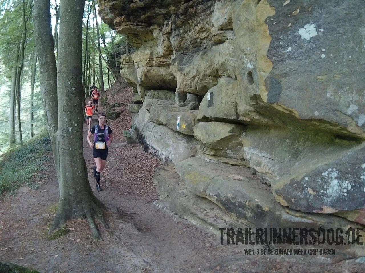 Das Müllertal nahe dem luxemburgischen Echternach, oder nahe von zu ziemlich jedem Ort im kleinen Luxemburg oder auch die kleine luxemburgische Schweiz ist ein Traum für jeden Wanderer, Läufer oder Naturliebhaber allgemein. Es verdankt seinen Namen den Sandsteinfelsen die über die Jahrtausende u.a. von der Sauer ausgehöhlt wurden. So bewegt man sich nahezu immer unter dem normalen Level über verschlungene Pfade, durch Spalten und über Wasserläufe. Schon bei meinem ersten Besuch im April, war ich total von den Socken. Ich bin, wie ich finde ja hier in meiner Gegend schon echt gesegnet mit tollen Trails und tue mich auf fremden Trails oft schwer wahre Begeisterung zu zeigen, aber das Müllertal ist einfach ein Traum mit seinen Steinformationen und seiner Wildheit.