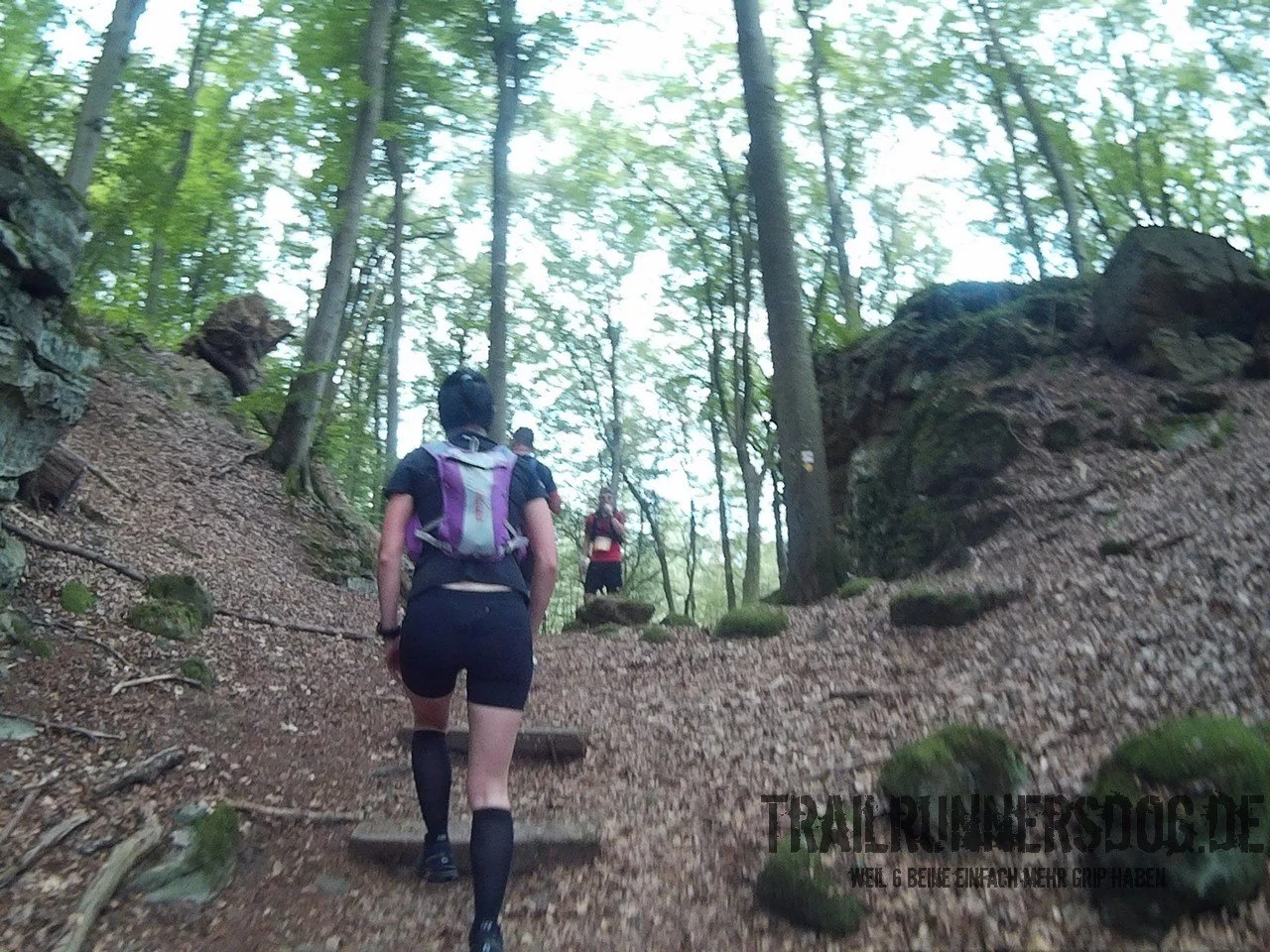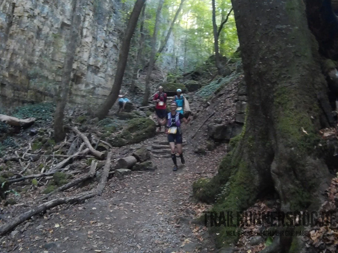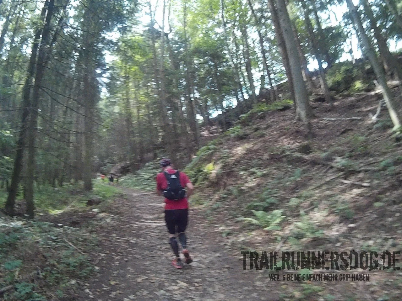 Wer schon mal im Müllertal war, der wird ahnen dass es nach dem Abstieg natürlich wieder nach oben ging. Logisch. Es gibt dort zwar kaum nennenswerte Anstiege die nicht laufbar sind, aber das Tal ist eben extrem wellig. Das verhindert einen ordentlichen Laufrhythmus und kostet somit echt viel Kraft.