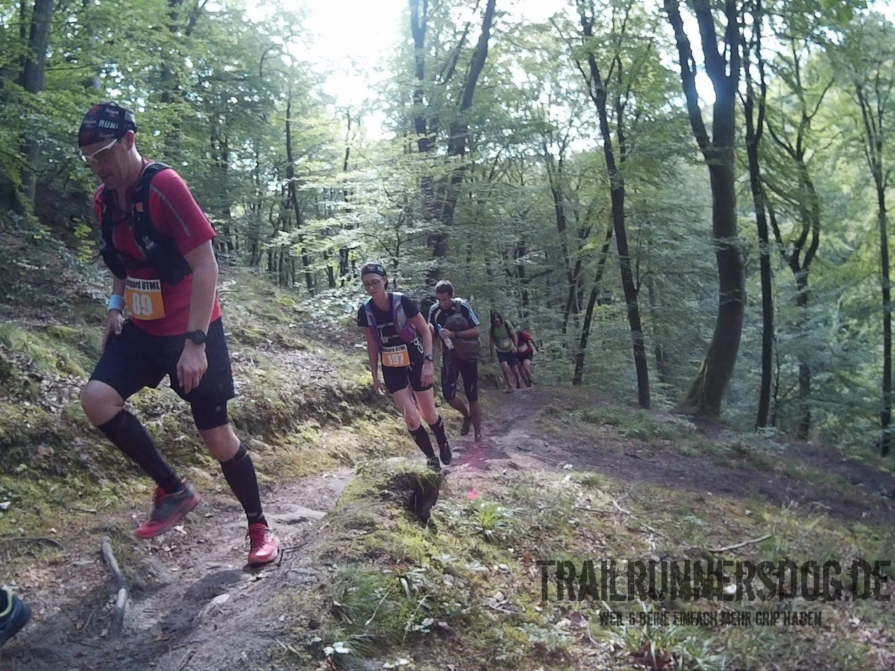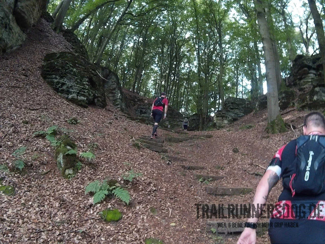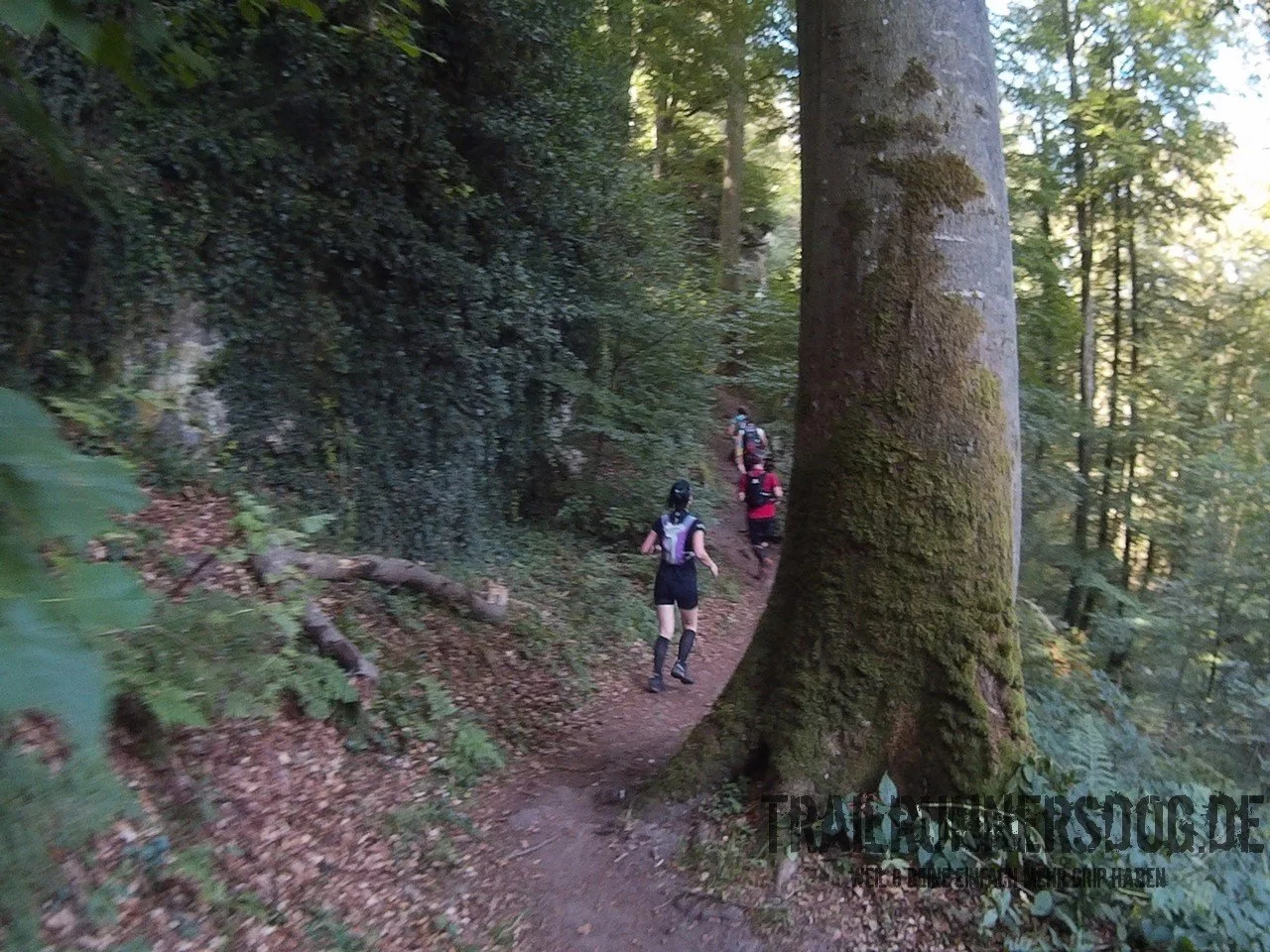 Wer schon mal im Müllertal war, der wird ahnen dass es nach dem Abstieg natürlich wieder nach oben ging. Logisch. Es gibt dort zwar kaum nennenswerte Anstiege die nicht laufbar sind, aber das Tal ist eben extrem wellig. Das verhindert einen ordentlichen Laufrhythmus und kostet somit echt viel Kraft.