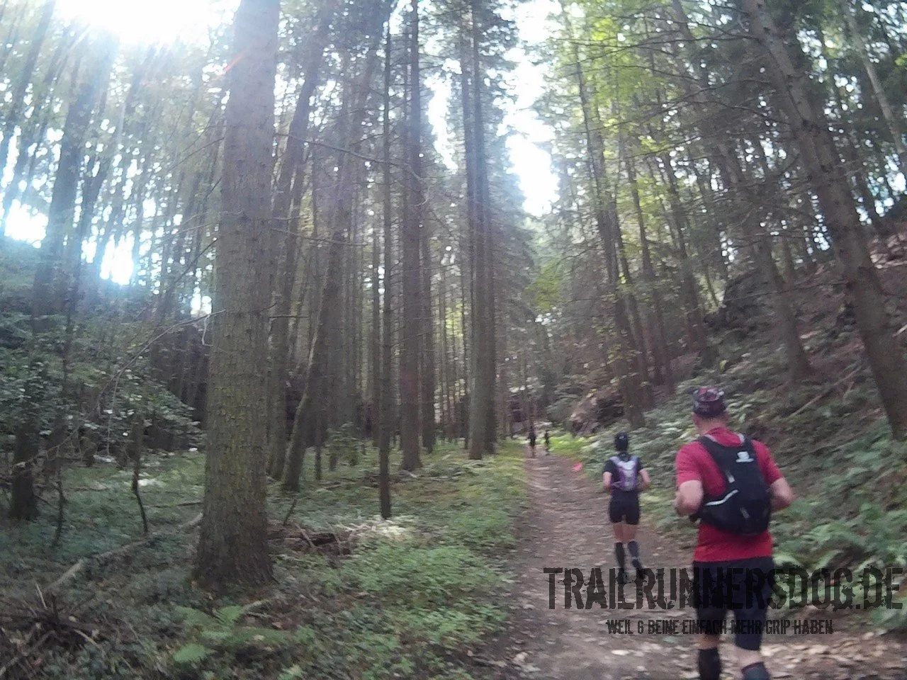 Im Grunde ging es, von ein paar Konterabstiegen abgesehen für 2 km bergauf und das Feld zog sich dadurch etwas auseinander. Ich lief des öfteren etwas vor um Fotos zu machen, oder jagte die kurzen aber knackigen Downhills hinunter. Seltsamerweise war ich der Einzige der dort Tempo machten konnte oder wollte. Leute, übt Downhills! Gibt nix geileres als sich irgendwo runter zu stürzen!