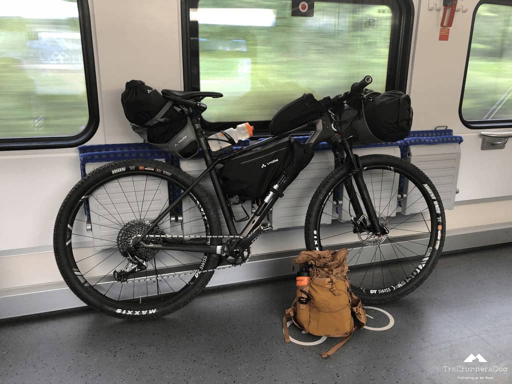 Ich stieg morgens zu einer recht humanen Uhrzeit also aufs Rad und rollte hinunter zum Bahnhof. Knappe 6 Kilometer durch den Wald und an der Mosel entlang bis zum Bahnhof in Kobern-Gondorf. Von dort aus wollte ich mit der Bahn nach Trier, dem Startpunkt der ersten Etappe fahren. Für die Bahn hatte ich mich entschieden, weil ich so hoffte vor dem eigentlichen Start noch etwas Ruhe zu bekommen und nicht mehr so viel am Rad rum packen zu müssen. Vollbeladen hätte ich mein Canyon Exceed nicht ins Auto bekommen. Die Bahn erschien mir hier die praktischere Lösung und mit der Variante hatte ich bisher auch immer gute Erfahrungen gemacht wenn ich Teile des Moselsteigs gelaufen war.