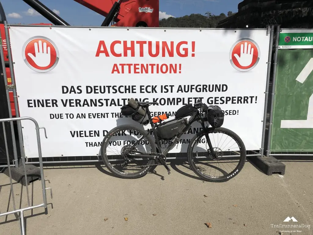 Die letzten Kilometer rollte ich locker durch Koblenz in Richtung Deutsches Eck. Ich schlängelte mich durch Touristen und Besucher bevor ich dann ganz kurz vorm Ziel meinen Moselcross beenden musste, das Deutsche Eck war auf Grund einer Veranstaltung gesperrt.