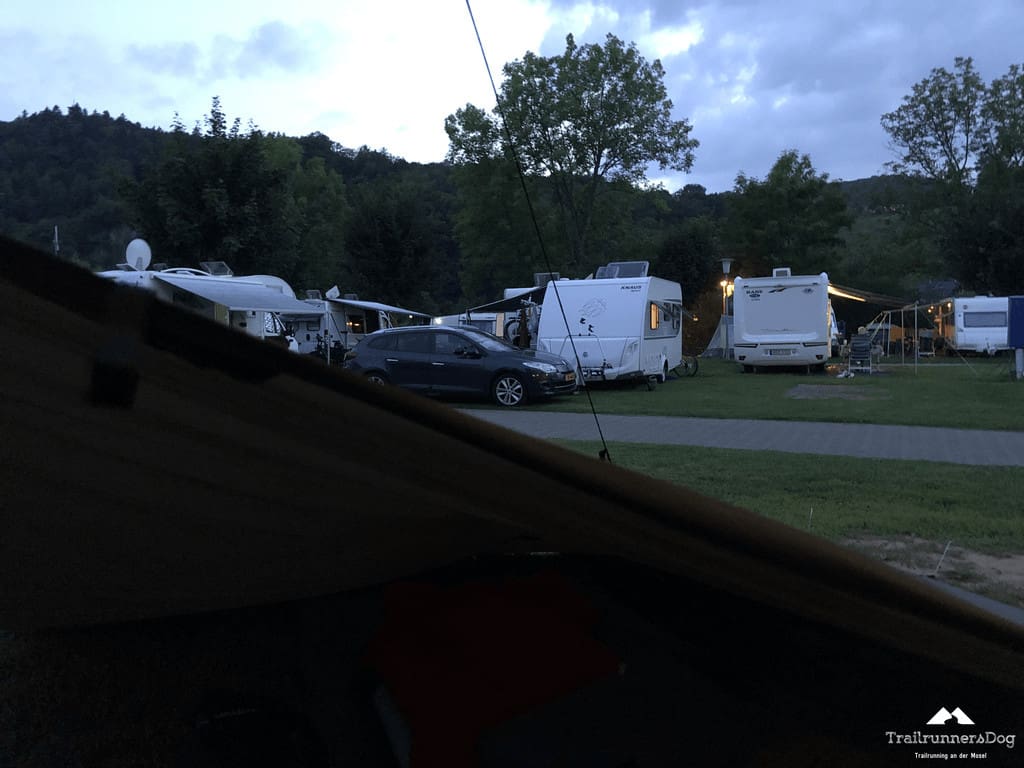 Auf dem Campingplatz in Bullay kam ich dann auch entsprechend spät an, checkte ein, baute mein Tarp unter Beobachtung der meist älteren Camper auf und bereitete mein Essen zu.