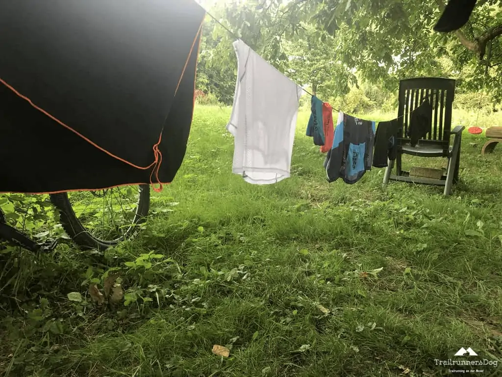 Nach einem frischen Kaffee (Danke an die Praxisfee Ruth) unterhielt ich mich noch ein wenig mit Martina und packte dann langsam mein Lager zusammen. Ganz trocken waren meine Radklamotten zwar nicht, aber es sollte ausreichen um das ausgespülte Trikot wieder anzuziehen. Da ich nur eine Garnitur dabei hatte, musste ich die dann auch nach jeder Etappe unter der Dusche oder sonst wo auswaschen. Nicht ganz so lecker, aber im Wald würde mich ja keiner riechen müssen.