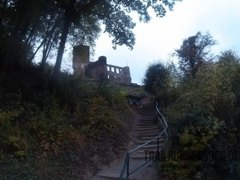Wenn ich mich recht erinnere, gab es einen schönen Weg, der die ganze Zeit bergauf führte. Irgendwann sahen wir auch die Burg (fast auf derselben Höhe wie wir) mussten aber feststellen, dass wir noch einmal komplett runter in ein Tal und wieder hoch zur Burg mussten…