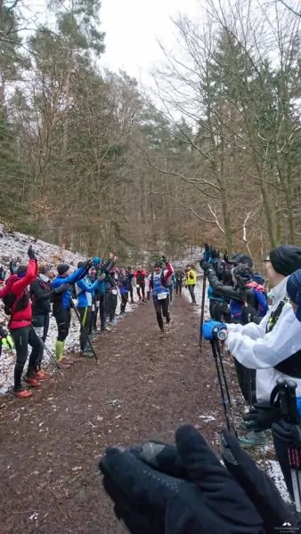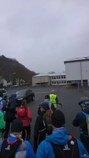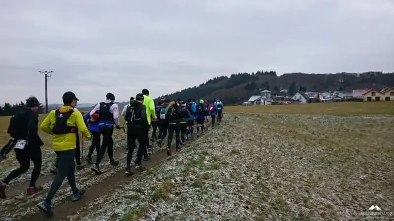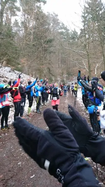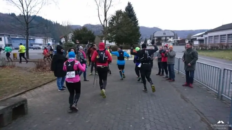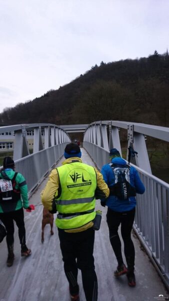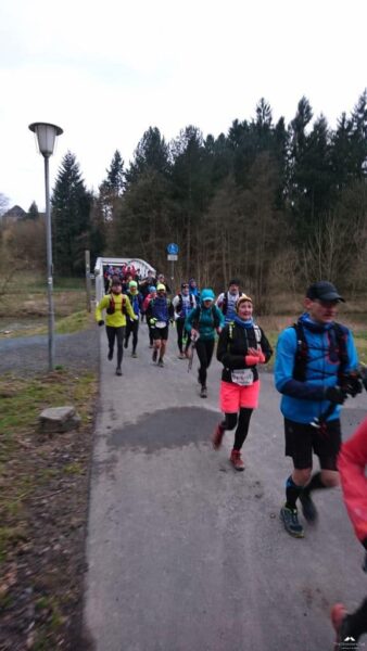 Kurz vor Beginn ertönte eine laute Trillerpfeife, hier herrscht „Ordnung“dachte ich. Das war der Wolfgang, Initiator/Vater des Ultra Trails, er hielt eine kurze Ansprache und wies darauf hin das die Schwächeren doch bitte vorne laufen sollten. Nach einem Foto ging es endlich (kaaaaalt) los.