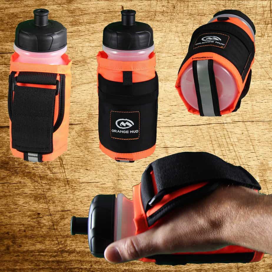 Was tun wenn der Trinkrucksack zu oversized ist, man aber trotzdem nicht ganz ohne Wasser unterwegs sein möchte? Das Orange Mud Handheld Hydration Pack, sprich Flasche in der Hand ist die Alternative wenn man nicht auf die meiner Meinung nach meist unbequemen Trinkgurte zurückgreifen will. Wie der Zufall so will hat mein Team Chef Josh von Orange Mud hier natürlich auch etwas im Repertoire. Das Orange Mud Handheld Hydration Pack mit 21 oz sprich etwas über 621 ml Fassungsvermögen.
