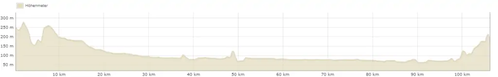 Zugegeben, die meisten Höhenmeter muss ich immer zum Schluß nach oben. Macht es aber auch nicht einfacher. Als der Tacho von km 99 auf 100 sprang, befand ich mich grade in letzten Anstieg über knapp 120 Höhemeter. Du kannst dir bestimmt vorstellen wie ich geflucht habe.