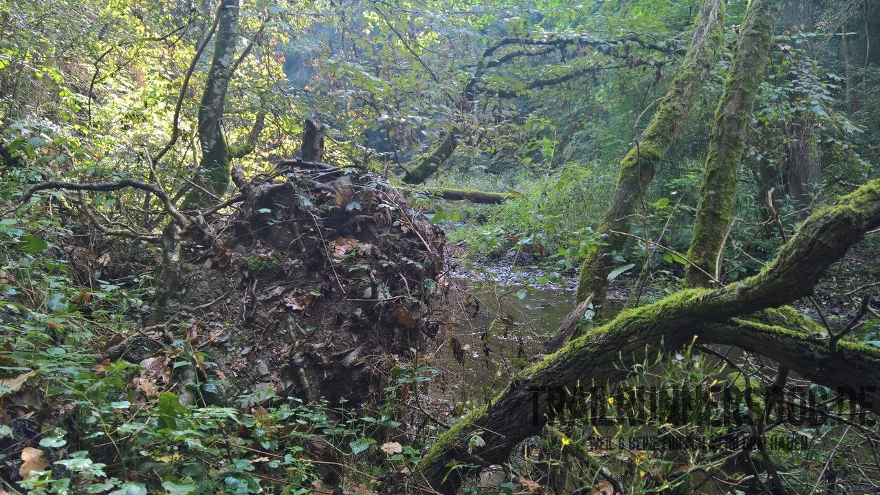 Ab hier beginnt dann für uns der richtige Trail und somit der spannende Teil des Pyrmonter Felsensteig, denn sobald man die kleine Eltz überquert hat verschluckt einen auch direkt wieder der Wald. Ab hier beginnt der Trail auch etwas schwieriger zu werden, denn man muss ständig darauf achten nicht über die vielen Wurzeln oder Steine zu stolpern. Aber hey, genauso wollen wir es ja, oder?