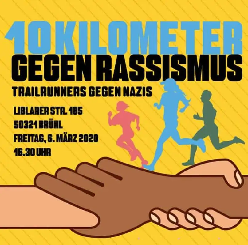 Aus diesem Grund gibt es in dieser Episode auch ein klares Statement gegen Fremdenhass und Rassismus von Matt und mir. Anlässlich des am 06.03.2020 stattfindenden Laufs des Trail Magazins „10 Kilometer gegen Rassismus – Trailrunners gegen Nazis“, lädt auch die Trailrunning Ville zum gemeinsamen Lauf für Solidarität.