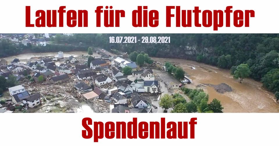 Der Schinder Alex Holl hat am 17.07. einen Spendenlauf – „Laufen für die Flutopfer“ ins Leben gerufen. Die 10 € Startgebühr gehen zu 100 % je zur Hälfte an das Spendenkonto RLP und das für NRW.